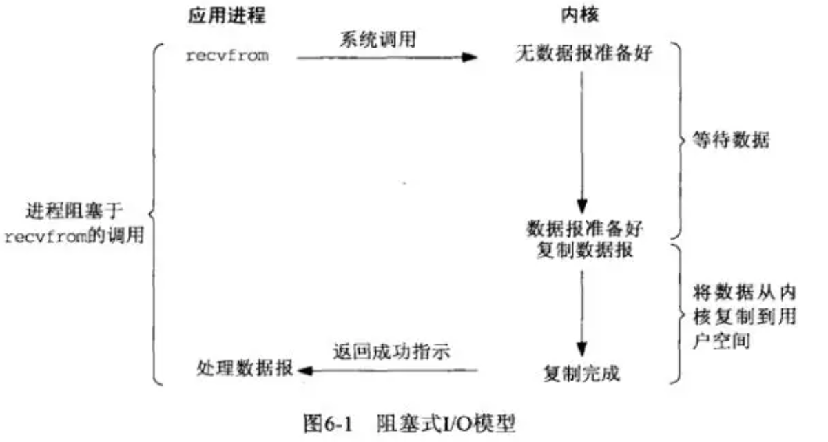 上面的处理流程中很明显存在一个问题,那就是当数据不存在的时候用户的进程或者线程将会一直阻塞,也就没办法处理其他业务了,