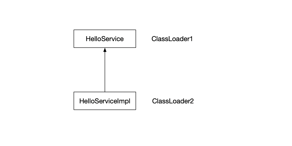 发散思维:假设存在一种情况,接口的类加载器和实现的类加载器不一致,如下