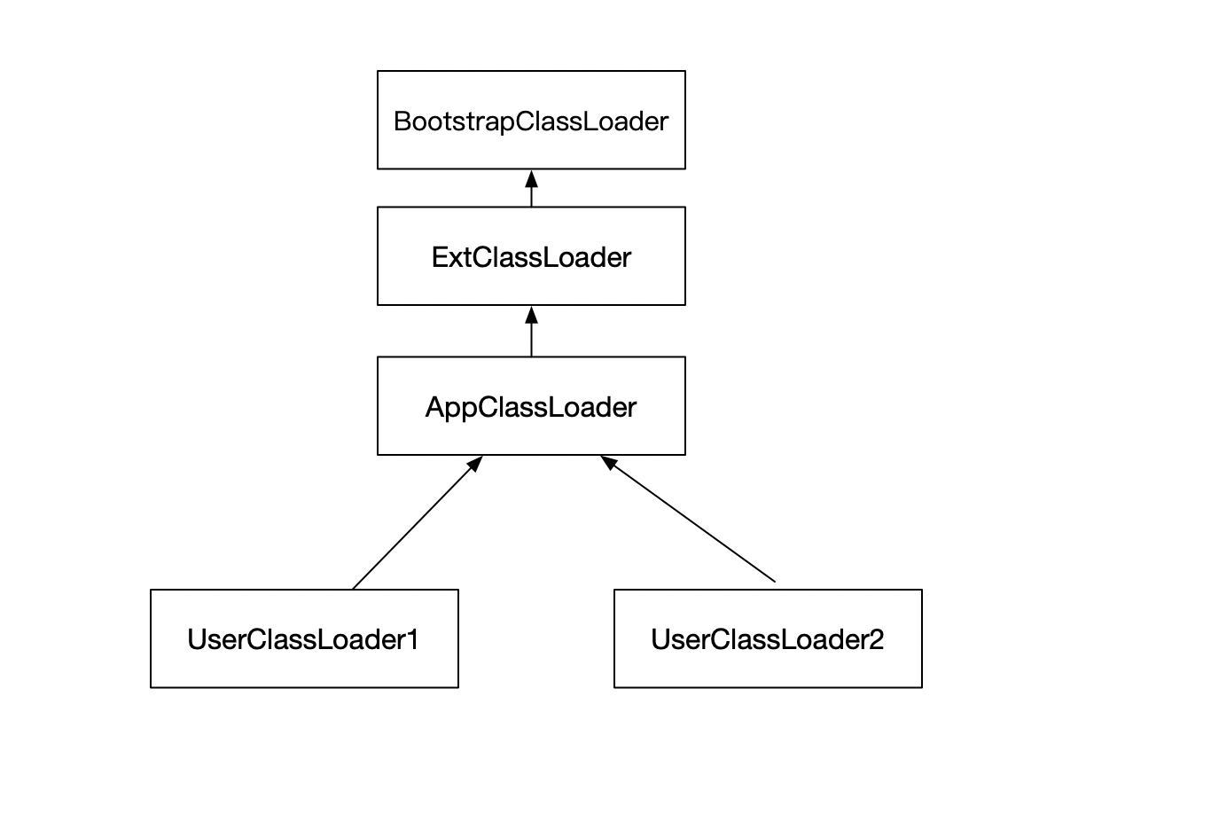 在收到加载类的请求的时候,当前的类加载器会将该请求委托给父类来加载,这样递归到BootstrapClassLoader,只有父类在确定无法完成该类的加载的时候,