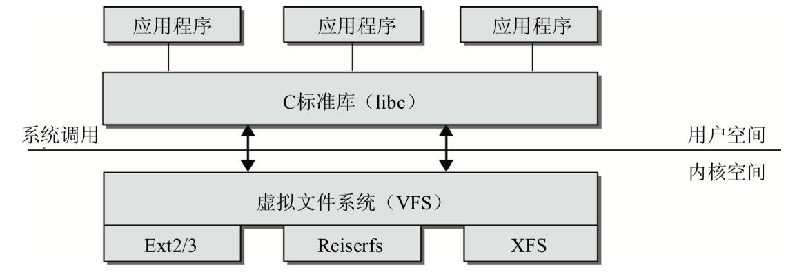 在linux中,一切皆文件。我们平时见到的各种类型的文件存储诸如ext2、ext3、fat32等等,对于上层的用户进程来说是一种 统一的视图,上层应用程序无需关心底层文件系统的具体实现,因为操作系统在内核层面上做了统一:对上层的用户进程提供了 统一的接口。类比我们学过的设计模式,这个就有点像是代理了,也即是真正的实现有很多种,不过对外提供统一的接口。而在 内核中完成这部分工作的就是虚拟文件系统了。如下图所示,虚拟文件系统在整个系统中的层级: