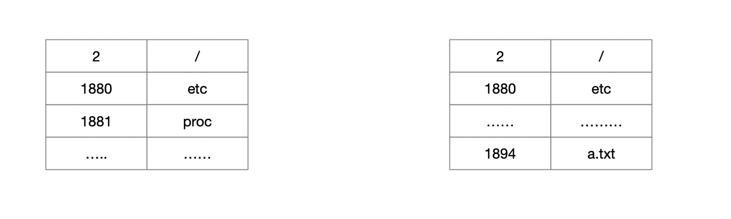 如上,文件系统中数据块中包含的内容即是表中所示的内容,我们通过索引节点可以查到对应的目录项的(也即是数据节点), 接下来通过数据节点中记录的信息,继续递归查找,最终找到文件,并获取文件的内容。可以看到文件系统中大量的使用了这种 hashmap的数据结构。