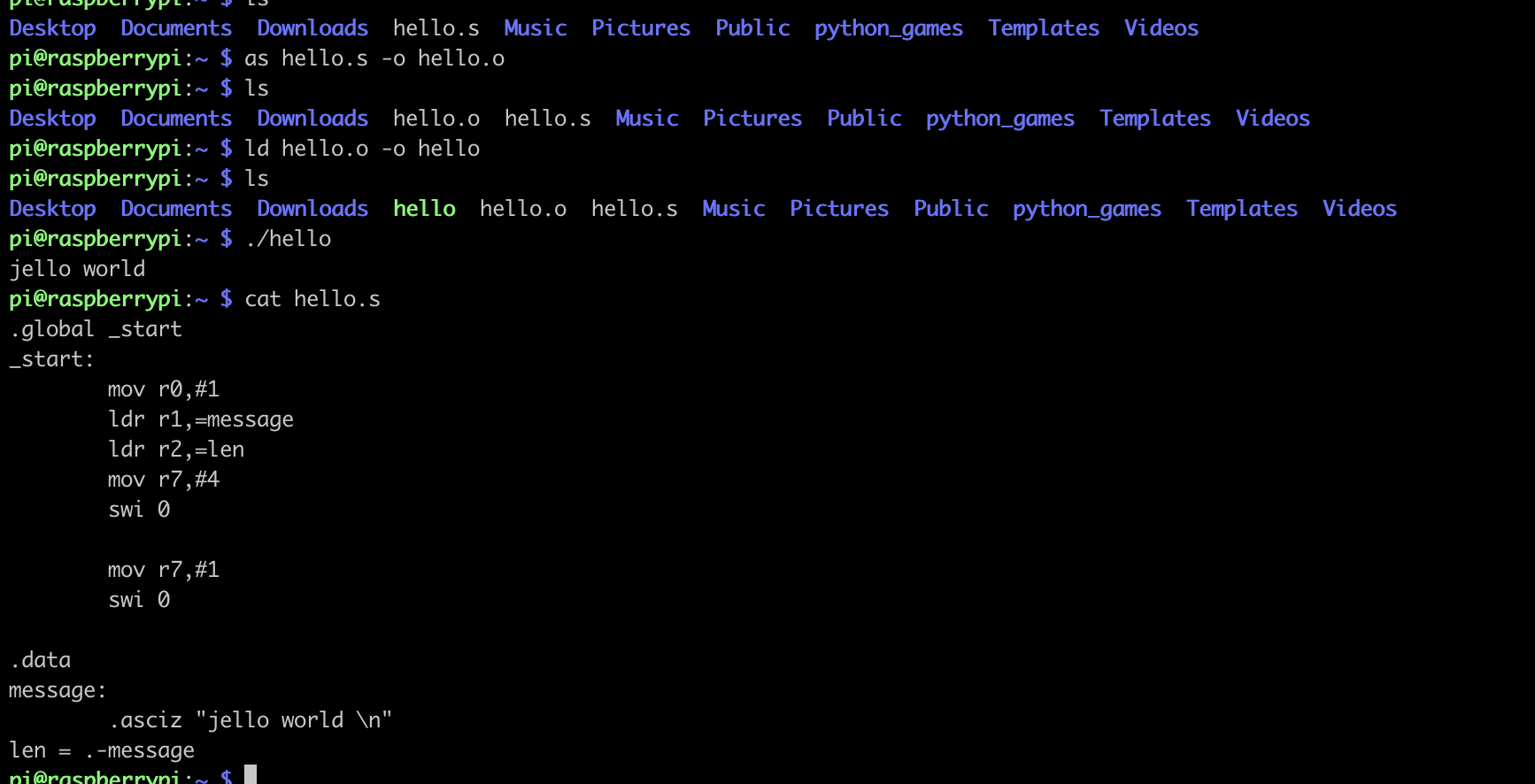 接下来通过一个示例来快速的演示一下汇编程序的hello world: