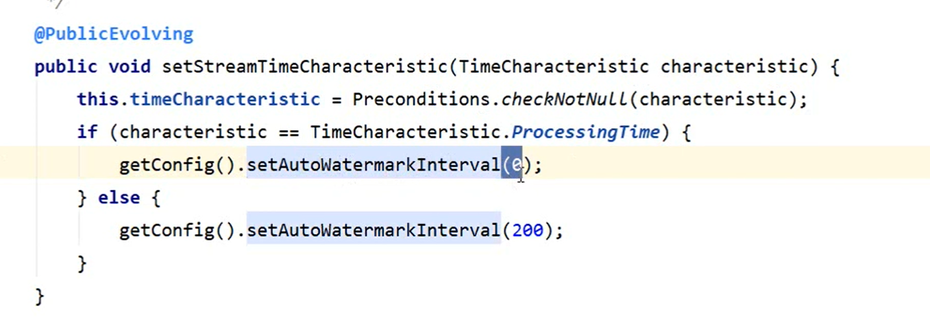 如上默认情况下我们使用的是周期性生成watermark,并且其生成的周期是200ms,不过可以在env中获取这个配置信息并重新设置watermark生成的时间间隔。