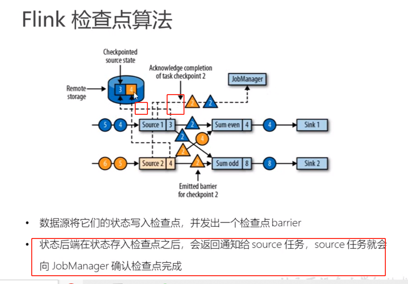 jobmanager 发出checkpoint barrier之后,source 算子的subtask将对应的状态数据保存到状态后端,之后再向jobmanager发出确认信息告诉jobmanager自己已经完成了checkpoint。