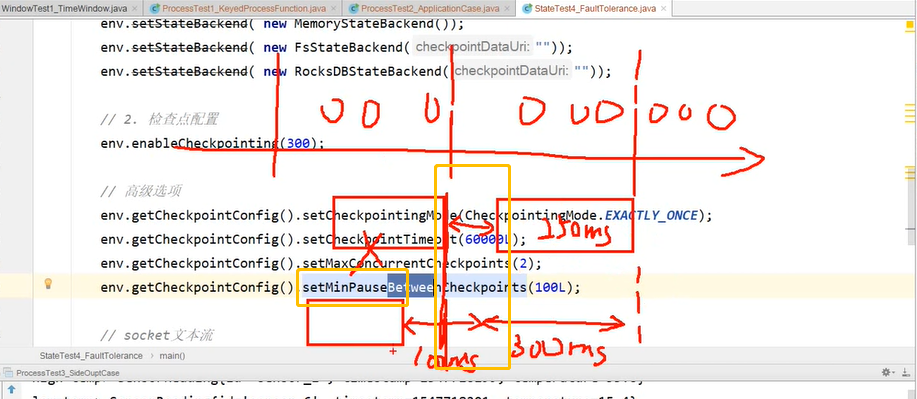 这里的高级选项:pausebetweencheckpoints优先级高于checkpointinterval,并且高于maxcurrentcheckpoint选项,因为pause就意味着同一个时刻只可以有一个checkpoint执行了