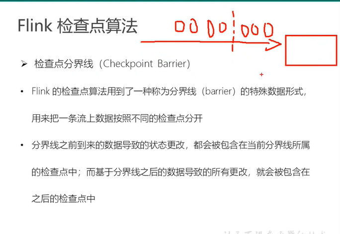 flink的checkpoint类似于perodic watermark,其本质上是在正常的数据流里面插入一下checkpoint barrier的事件,算子在接收到一个非正常的事件的时候会根据事件的类型做相应的操作