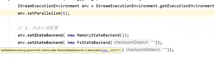上述是设置状态后端的时候代码里面的设置。。。(看着是departched方法,不过实际上并没有其他方法可以调用,因此这里还是使用这种方式),