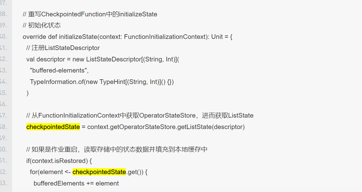 原因是因为并行度可能会发生调整,因此存在一个子任务接收了多个原来子任务的状态数据。具体代码如下: