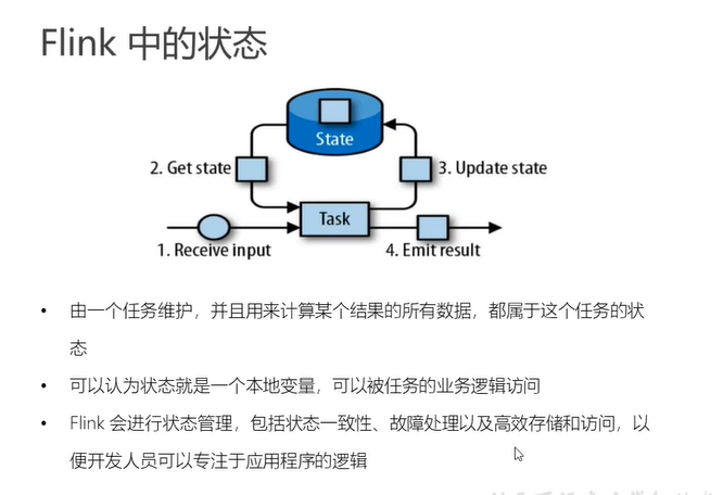 flink的状态是和算子关联起来的,和特定的子任务绑定在一起,用于保存临时的计算结果,如下图所示: