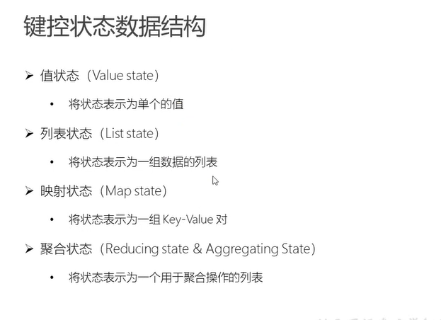 - reducing state、aggregatingstate:这两种数据结构指代的是在数据到来的时候对原有的state进行一个聚合操作。