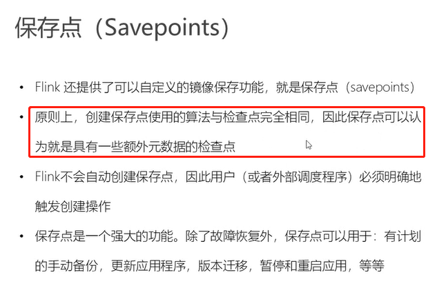 flink中保存点(从原理上来说保存点和检查点是同一种实现逻辑)