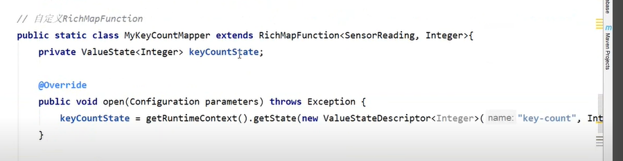 也就是说getRuntimeContext实现的是不同key的状态的隔离,也正因为getRuntimeContext的调用,因此operator必须是RichFunction,这样才可以调用到这个方法。